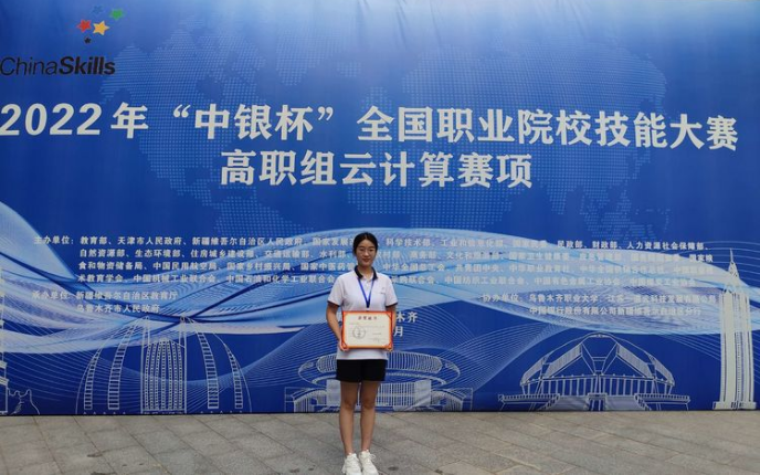 2022年全国职业院校技能大赛高职组“云计算”赛项,于8月1日至4日在乌鲁木齐职业大学举办,有59支来自全国各地的高等职业公司代表队参赛。经过三天紧张激烈的角逐,永利yl现代移动通信技术专业杨雪莹三等奖(指导教师:张静)。