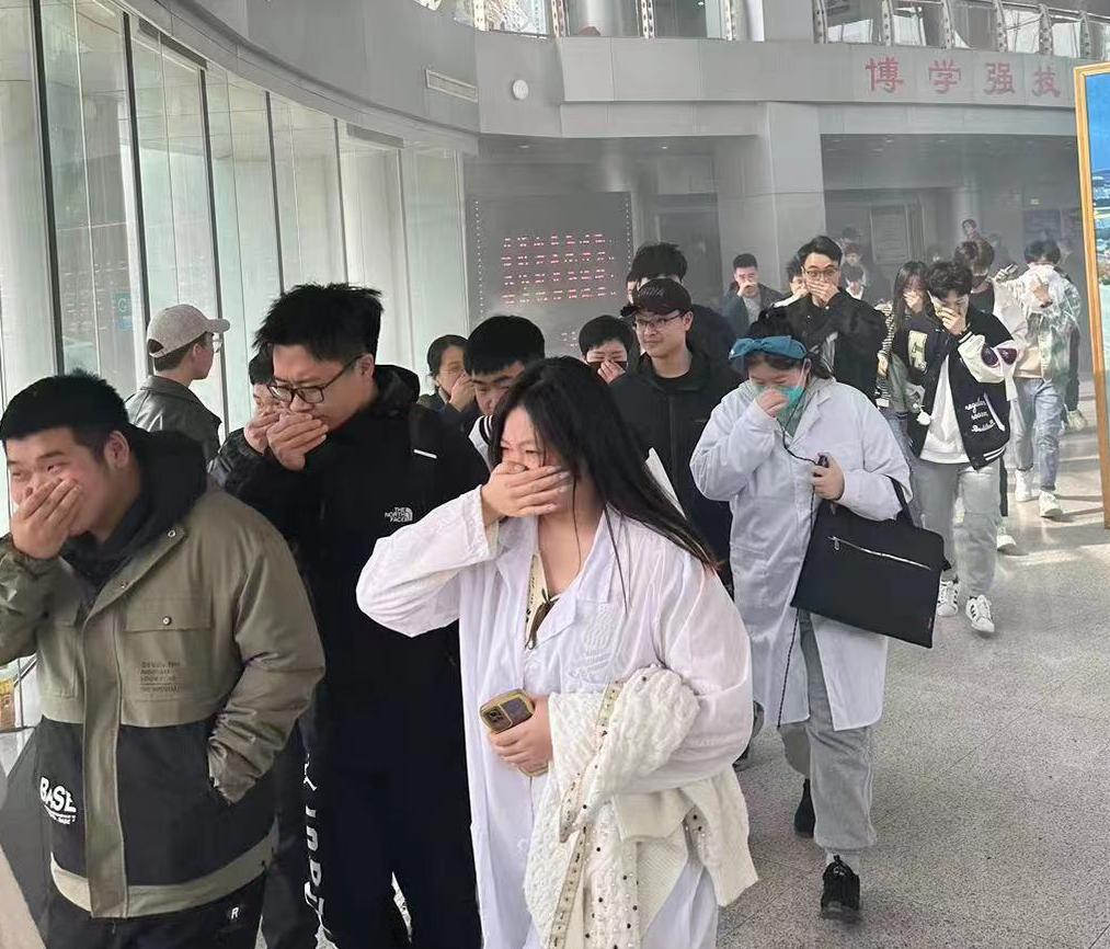 上午11:20分,疏散警报骤然响起,全体员工在老师的指引下迅速有序的离开教室,捂住口鼻并以弯腰低俯姿态有序撤离教学楼。整个演练过程秩序井然,员工撤离迅速,紧张而不慌乱。各班紧急疏散到操场指定的安全区域后,在操场集队。