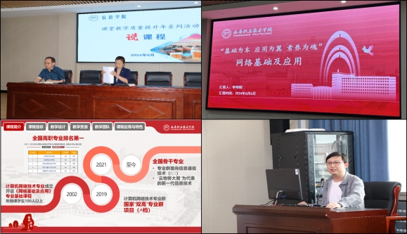 活动中,来自数媒应用技术系和软件应用技术系的15位教师进行了说课,从课程定位、目标、内容、教学设计、教学资源、教学团队、课程应用、特色创新等八个方面对本学期承担的课程进行了汇报,每名教师精心设计了PPT,由教学经理、教务科长、系主任、专业主任组成的评价小组进行现场打分。