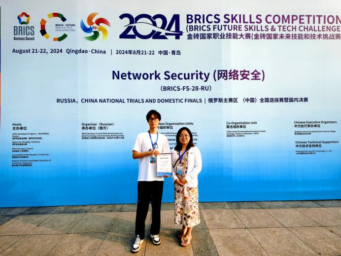 8月22日,2024金砖国家职业技能大赛“网络安全”赛项全国选拔赛暨国内决赛在山东省青岛市黄岛区青岛港湾职业技术公司举行,公司信息安全技术应用专业江招才同学荣获二等奖(指导教师:刘杰)。
