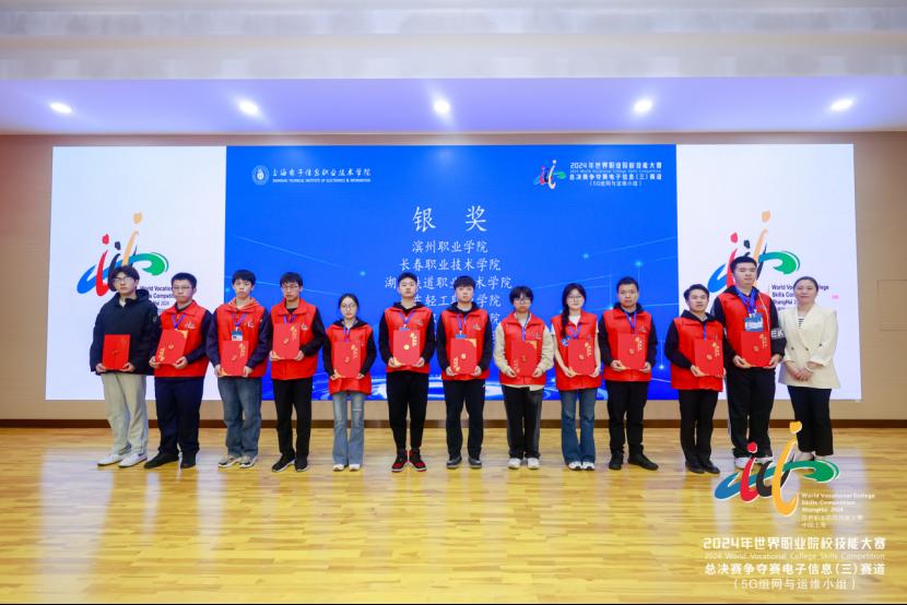 技炫青春,能创未来。10月25日,2024年世界职业院校技能大赛总决赛争夺赛电子信息(三)赛道 (5G组网与运维小组)在上海电子信息职业技术公司开幕。10月26日至28日,来自全国31个省、市、自治区的61所高职院校的203名选手同场竞技,展示技能与风采。公司代表队现代移动通信技术专业郑旭、王欣二位教师指导的王凯平、许林暄、赵宗宇、刘志阳勇夺该赛项银奖。