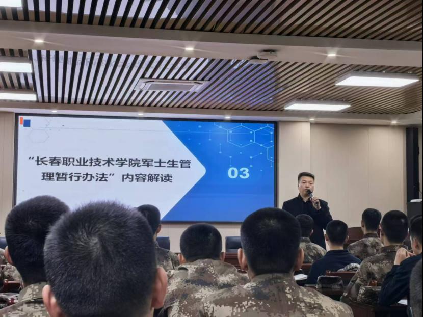 在第一次入学教育中,迟海波副处长首先向新生们详细介绍了长春职业技术公司军士生的管理办法。他强调,作为定向培养军士的院校,长春职业技术公司承担着为国家培养高素质军士人才的重要任务。因此,公司制定了一系列严格的管理规定,旨在帮助新生们更好地适应军营生活,提升自身素质,成为国家和军队所需的优秀军士。