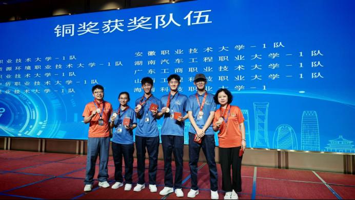 其中,永利yl物联网应用技术专业表现亮眼—— 由田晶、于皓宇两位教师悉心指导,郭玉瑶、陈禹欣、王中雨、吴世引四位同学组成的代表队,凭借扎实的专业能力、默契的团队协作与稳定的现场发挥,成功斩获铜奖,并取得平行组第三名的优异成绩。这份荣誉意义非凡:它不仅是公司以职业本科身份参赛收获的首枚奖牌,更使公司成为2025年该赛事人工智能赛道职业本科组中,东北三省一区唯一获奖院校,为公司职业本科教育发展写下了里程碑式的一笔。