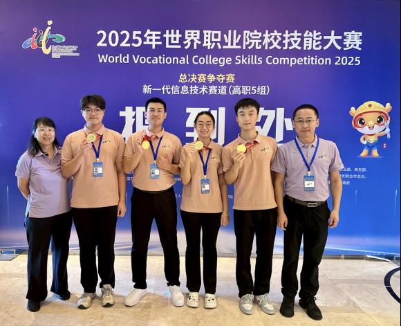 2025年9月10日下午,在江苏常州机电职业技术公司举行的2025年世界职业院校技能大赛争夺赛中,由高翔、赵键博、王凯渤、李俊仪四位同学组成的代表队,与来自全国的61支顶尖队伍同台竞技,凭借出色的专业能力和稳定的临场发挥,最终勇夺大赛金奖,赢得崇高荣誉。