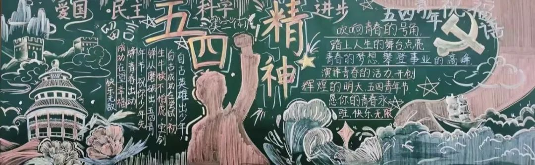 同学们用手中的粉笔,在黑板上勾勒“五四”历史画卷,用斑斓的笔触镌刻对五四精神的深邃感悟。每幅作品既是信息学子诠释五四精神的鲜活注脚,更彰显出其锐意进取、朝气蓬勃的青春底色,让百年薪火在校园中激荡出时代新声。