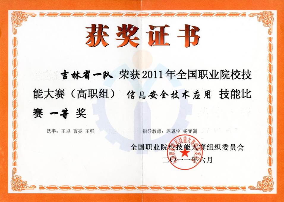 网络信息安全与防护赛项获奖证书