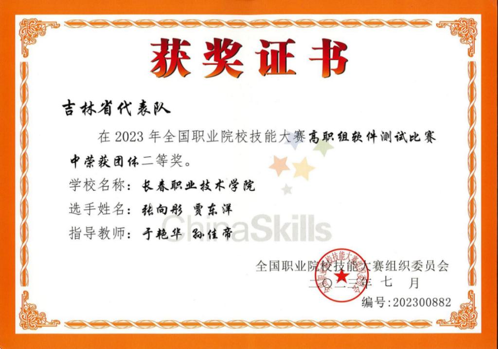 软件测试赛项获奖证书