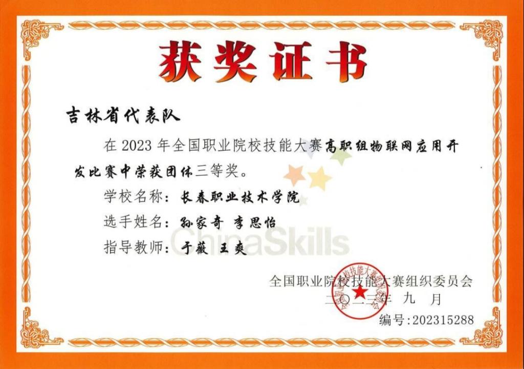 物联网应用开发赛项获奖证书
