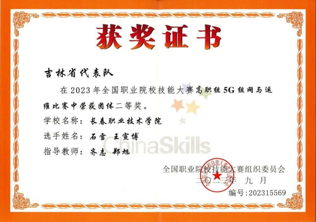 5G组网与运维赛项获奖证书