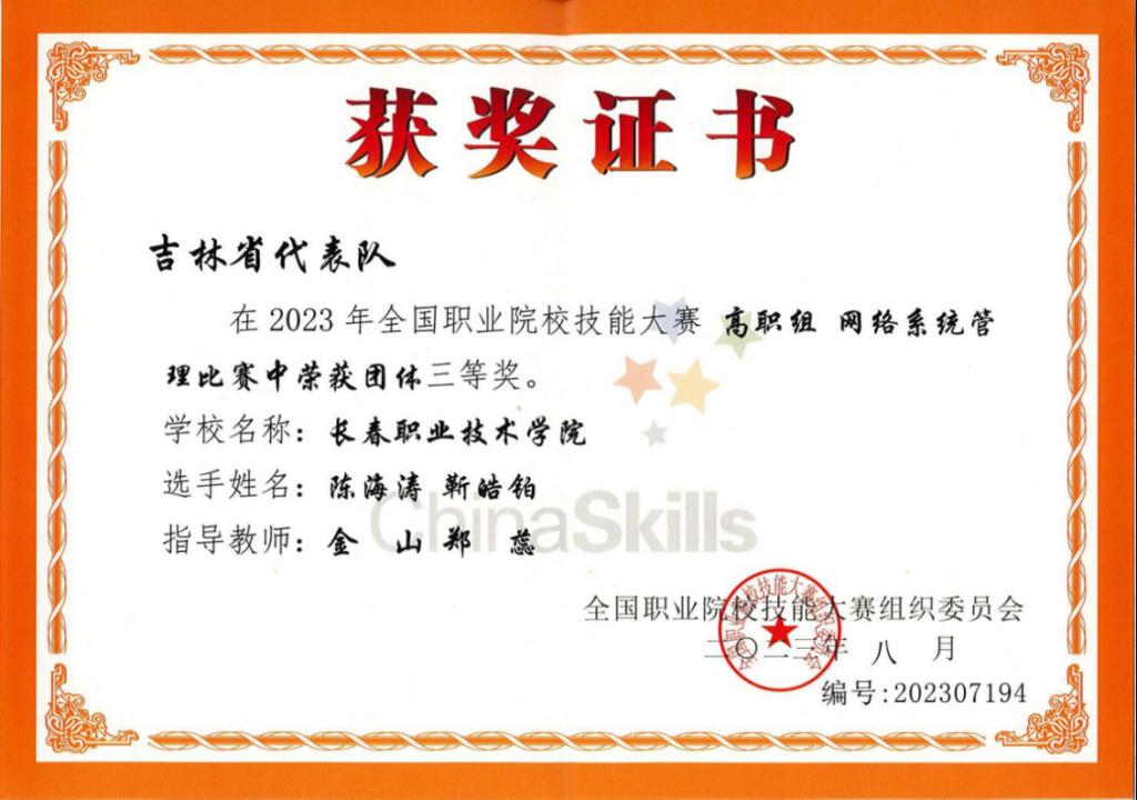 网络系统管理赛项获奖证书