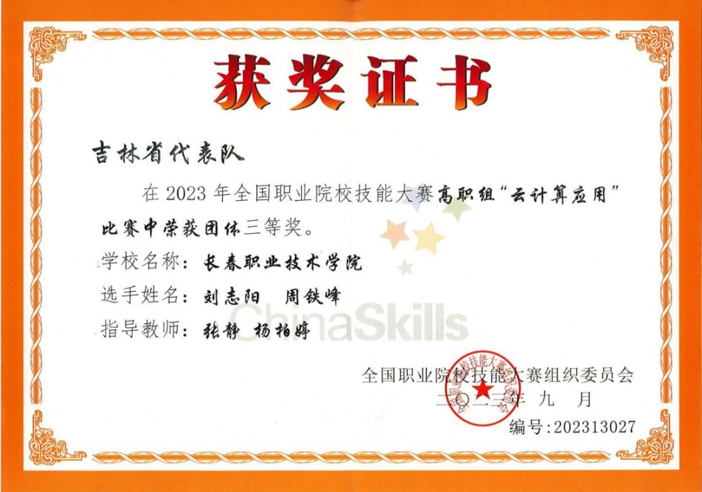云计算应用赛项获奖证书
