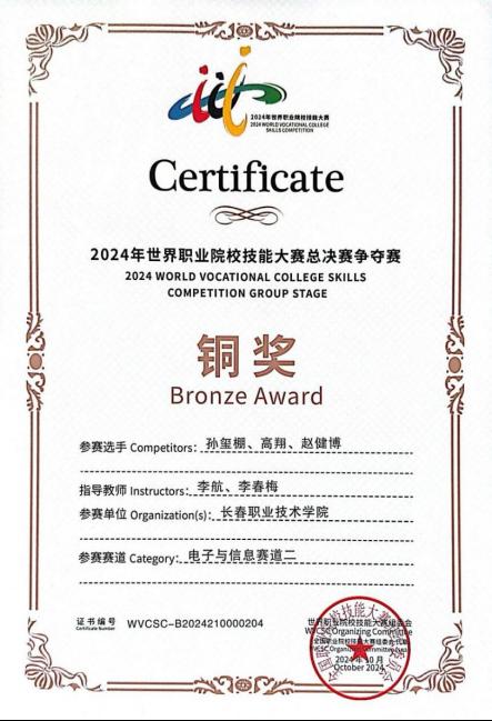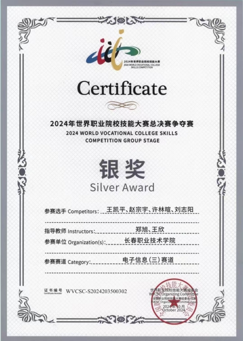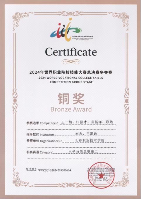 电子信息(三)赛道(5G组网与运维小组)获奖证书