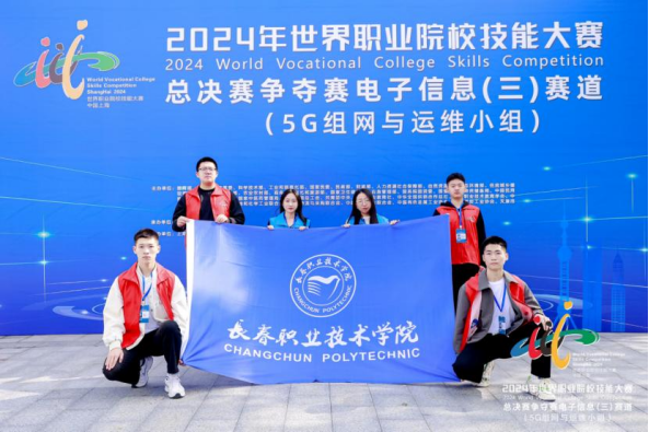 电子信息(三)赛道(5G组网与运维小组)指导教师与参赛选手合影